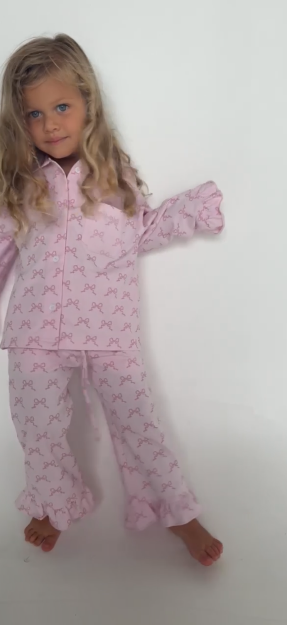 Introducing our new BOW kid's Pyjamas, crafted with the perfect blend of comfort and stretch. These pyjamas are made with a luxurious fabric composition of 95% cotton and 5% spandex, ensuring a soft and breathable feel against the skin. They feature a frill cuff for extra cuteness!
