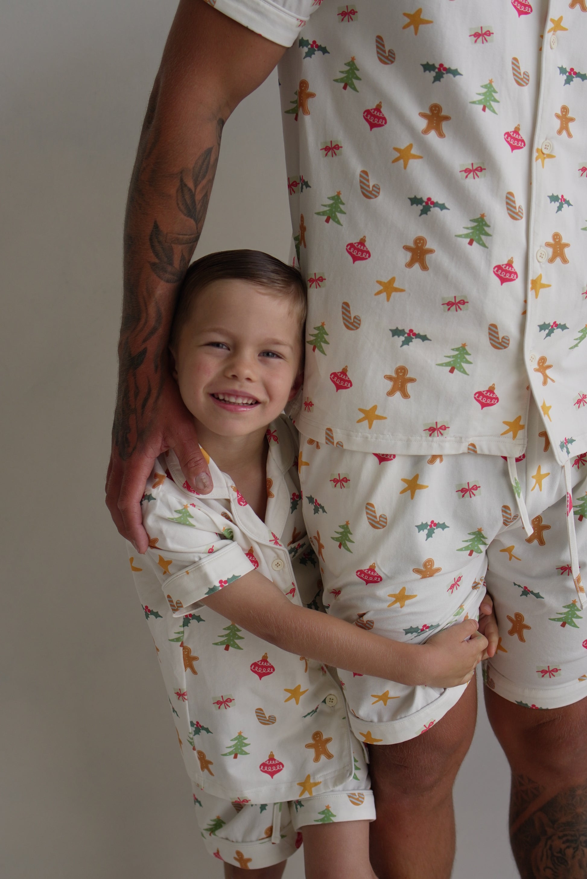 Get into the festive spirit with our button down shirt and shorts set , designed with our much loved Christmas print. Perfect for holiday lounging or festive gatherings, this set combines comfort with cheer. Even better—it’s available in coordinating styles for the whole family, so everyone can join in the fun!
