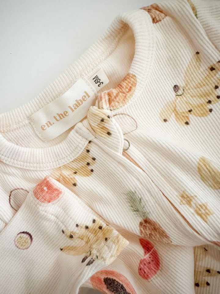 Introducing our new Tutti Frutti ribbed romper.